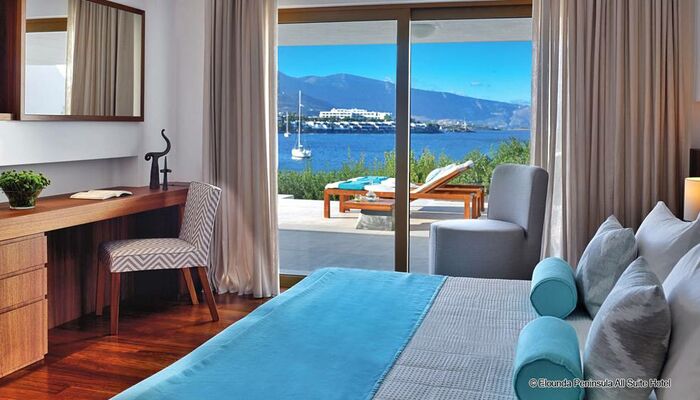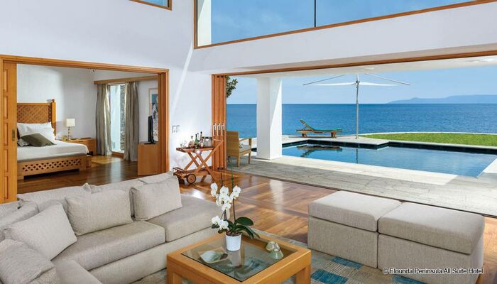 Benvenuti nella penisola di Elounda, un hotel senza camere, solo suite! Il miglior hotel sul mare in Europa ti invita a goderti il meglio che la vita ha da offrire. elounda peninsula ALL SUITE HOTEL è l`hotel più esclusivo in Grecia. Posizionato su un tratto di terra peninsulare, gode di una posizione eccezionale con vista sulla baia di Elounda, sulla baia di Mirabello e sulla distesa del Mar Egeo. La vista è blu a perdita d`occhio.